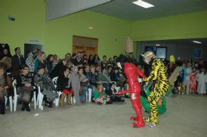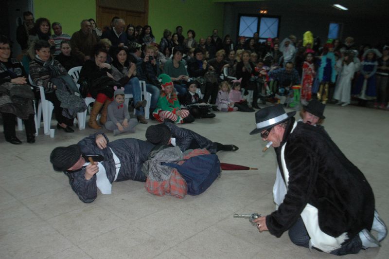 Y comenzó el desfile, primero los niños, “hadas”, ” reyes”, “princesas”, “indios”, “ titiriteros” “cajas sorpresas”, “buzones de correos”, “mexicanas”, “ orientales”, “trajes de época”, “Delfos”, “angelitos”, “ ratoncitos”, personajes como “la abeja maya”, “Harry Poters”, “piratas” “la muñeca MONSTERS HIGH” en su envoltorio, … después los mayores “ trogloditas”, ”trajes confeccionado con bolsas del Corte Inglés”, “grupo mafioso de Gánster”, “profesores de la escuela de Harry Poters”, “personajes cerveceros”, “un mundo al revés” y “una boda charra” por todo lo alto con obispo, padrinos e invitados…no faltó el beso, el lanzamiento de confetis y caramelos, este grupo se llevó el primer premio de grupo de adultos, aunque como dijeron vinieron a divertirse y pasárselo bien, y su jamón de premio lo donaron a la Asociación de Jubilados y Personas Mayores San Benito de Venialbo, y el segundo premio fue para el grupo mafioso de Gánster compuesto por Lolo, Mari Carmen, Cari y juli.