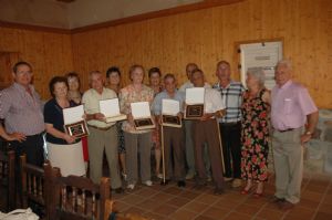 Finalizados los postres, se procedía a homenajear a los miembros de la Asociación que han superado los 80 años de edad, correspondiendo a Dña. Teresa Rodríguez, Dña. Sofía Carrillo, D. Francisco Martín, D. Nemesio Saludes y D. Cristino Sánchez que recibían una placa como recuerdo.